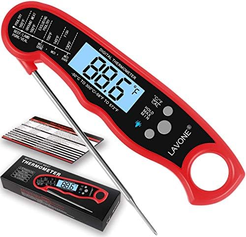 LAVONE Meat Thermometer- Instant Read Meat Thermometer for Cooking, Fast & Precise Digital Food Thermometer with Backlight, Magnet, Calibration, and ...